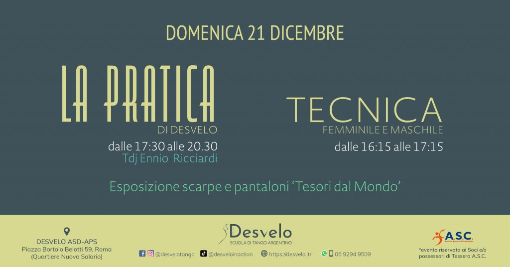 Domenica 21 Dicembre, vi aspettiamo per il consueto appuntamento mensile con la Pratica di Desvelo. PROGRAMMA: Tecnica mista multilivello dalle 16:15 alle 17:15 Pratica dalle…