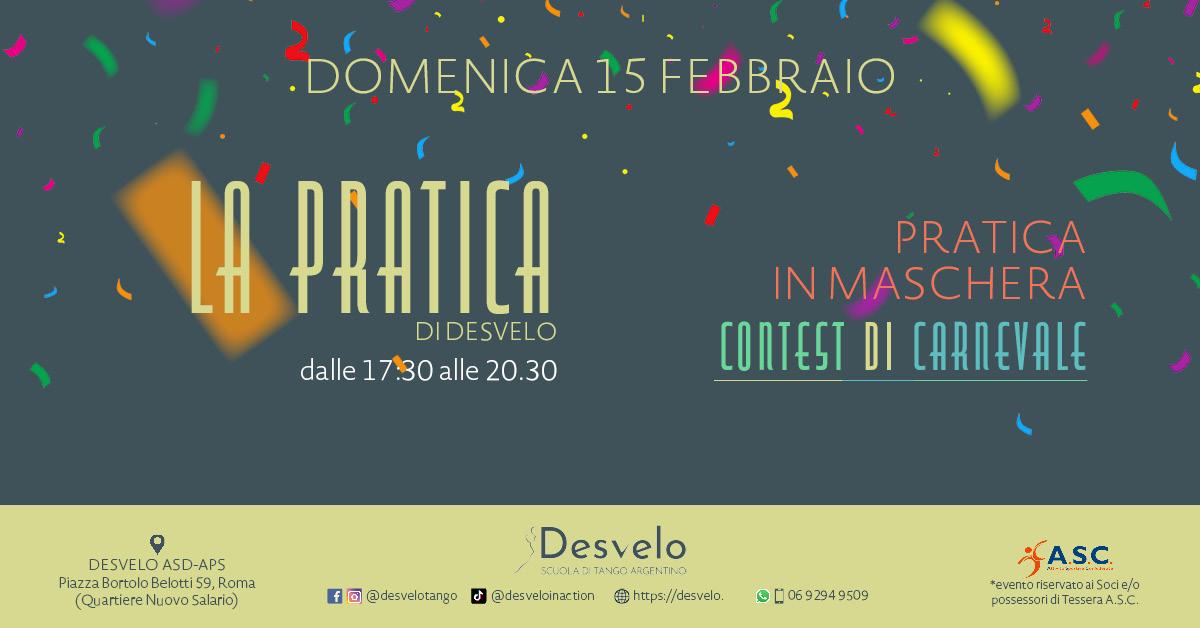 Domenica 15 Febbraio vi aspettiamo alla Pratica di Desvelo in maschera!